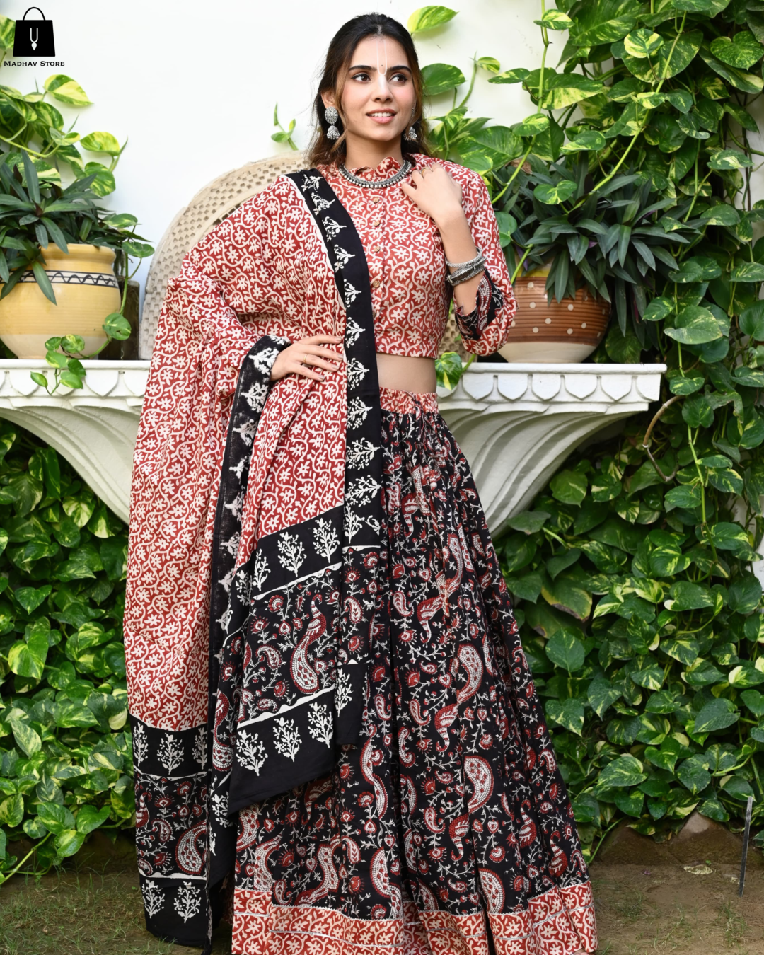 This Gopi Dress is made of premium cotton which is lightweight and super-soft with beautiful bagru print ,it includes Top and skirt with Mulmul Duppata