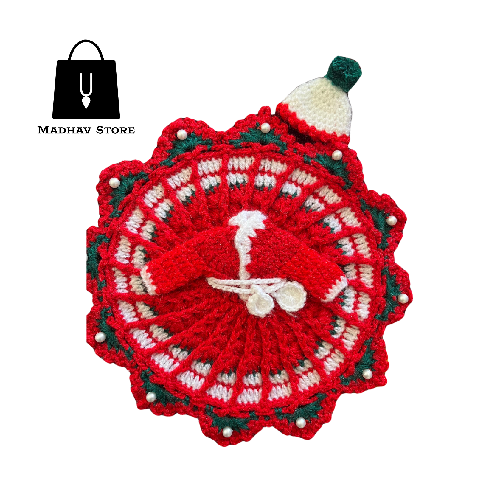 Red & Green Hand stitched woolen Winter Special Dress for Laddu gopal
